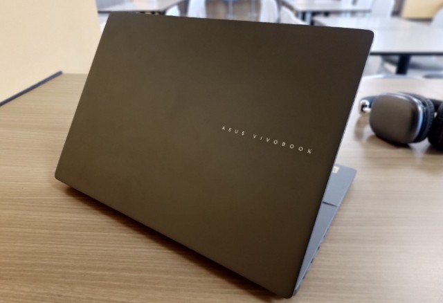Tidak ada aksen berlebihan atau elemen desain yang terlalu mencolok, sehingga ASUS Vivobook S14 tetap relevan digunakan di lingkungan kerja formal maupun kasual.