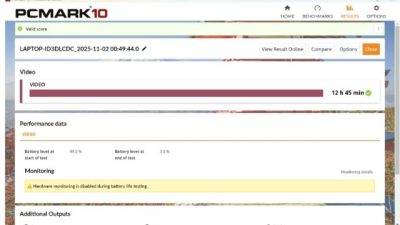 Dalam penggunaan ringan hingga sedang, durasi baterai dapat mendekati seharian penuh. Dengan charger Type-C 65W, pengisian daya juga tergolong cepat dan praktis.