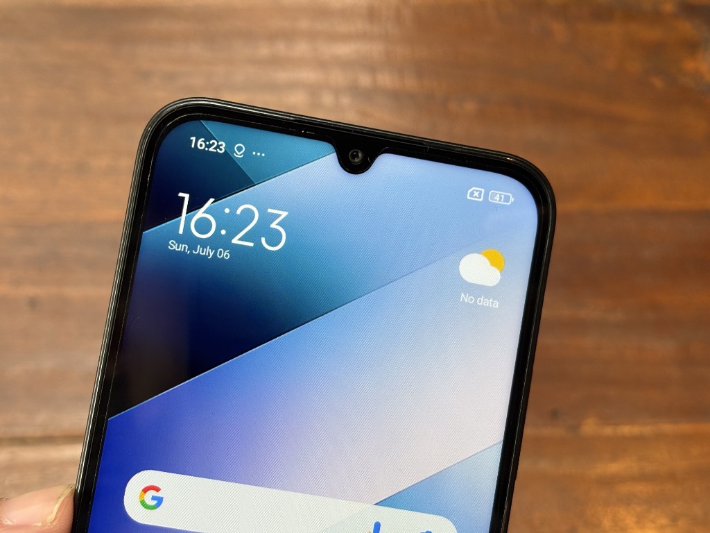 Bezel di sekeliling layar memang tidak terlalu tipis dan ada sedikit catatan pada penggunaan gaya dotdrop (poni) untuk menampung kamera depan, namun untuk kategori ponsel terjangkau hal ini bisa dimaklumi.
