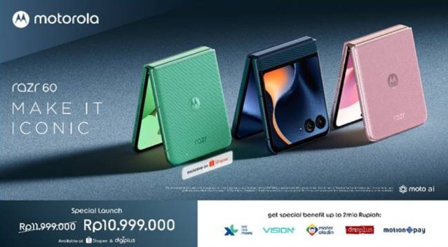 Hadir sebagai generasi terbaru lini razr, motorola razr 60 memadukan desain premium, teknologi kamera inovatif, ketahanan tinggi, serta kecerdasan buatan motoAI yang terintegrasi langsung pada layar eksternal.