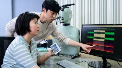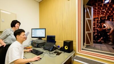 Samsung Researcher sedang melakukan uji akustik untuk memisahkan suara manusia dari noise di latar