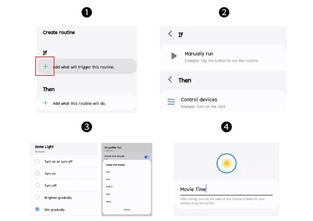 SmartThings memungkinkan pengguna untuk mengatur rutinitas harian dengan mudah. Fitur Food List membantu memantau isi kulkas, mengatur suhu, dan mengontrol siklus pencucian.