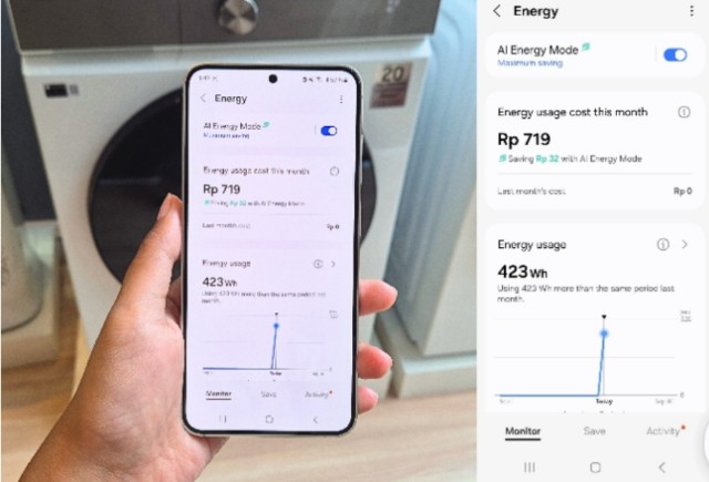 Integrasi AI dalam peralatan rumah tangga dan SmartThings tidak hanya memudahkan, tetapi juga mengoptimalkan penghematan energi. Dengan AI Energy Mode, sistem menganalisa pola penggunaan perangkat, menyesuaikan konsumsi energi sesuai kebutuhan.