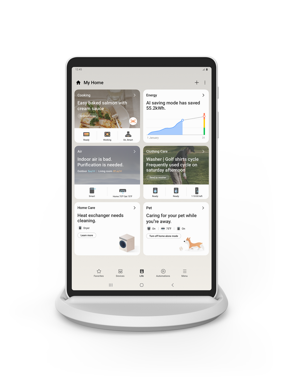 Untuk pertama kalinya, beragam layanan SmartThings yang berbasis AI dan dapat dikustomisasi telah disatukan serta dapat dikontrol dari satu perangkat khusus melalui Samsung Home Hub.