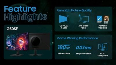 Dilengkapi dengan panel QD-OLED QHD, refresh rate 180Hz, dan respon ultra cepat 0.03ms, monitor ini menjanjikan pengalaman bermain game terbaik di kelasnya.