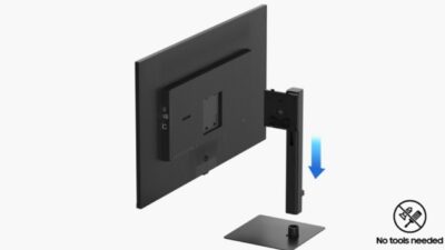 Samsung ViewFinity S8 dilengkapi dengan Easy Setup Stand, memungkinkan pemasangan tanpa obeng (screwless).