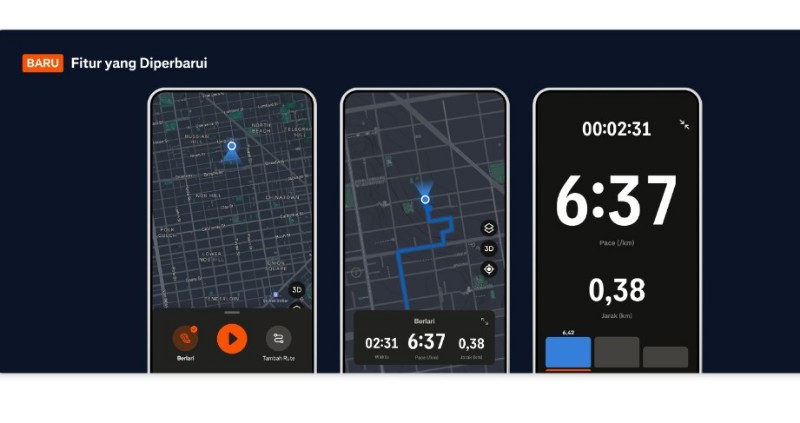 Dengan tampilan yang disederhanakan, pengguna kini bisa memilih jenis olahraga, menavigasi rute, dan memantau statistik secara real-time dalam satu aplikasi.