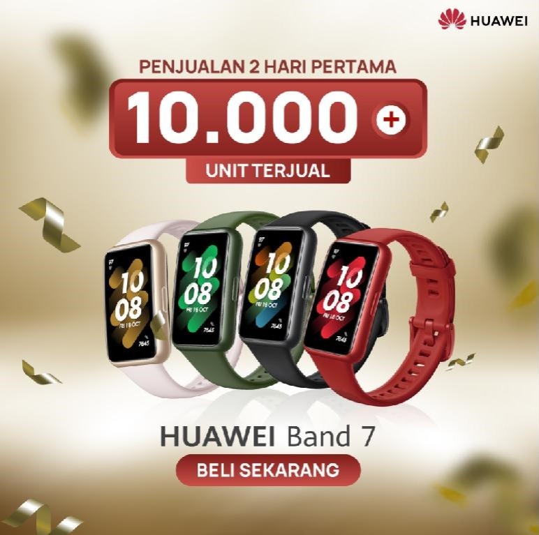 review1st.com – Peluncuran resmi HUAWEI Band 7 sebagai smartband terbaru dan tertipis dari Huawei menarik atensi besar konsumen Indonesia, terbukti dengan kesuksesan penjualan 10.000 unit hanya dalam waktu dua hari sejak periode penjualan pertamanya dibuka pada awal Juli.