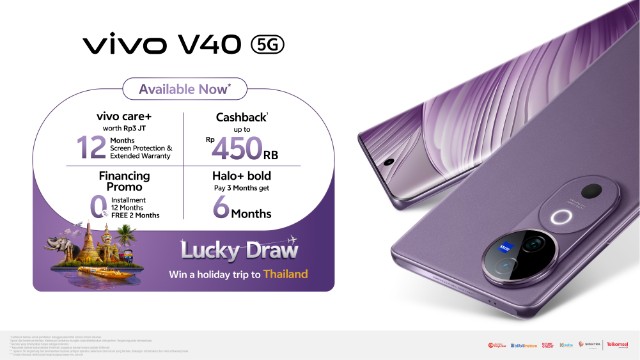 Dapatkan vivo V40 dengan harga spesial dan berbagai promo menarik mulai 13 September 2024. Tersedia dalam varian RAM dan ROM yang berbeda, serta berbagai hadiah eksklusif untuk pembelian selama periode promo.