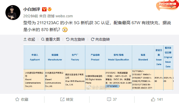 Menurut data sertifikasi 3C, model mesin baru adalah “2112123AC”.Â