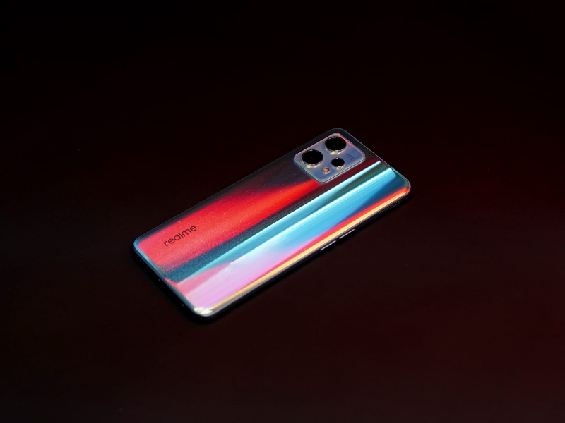 Efek khusus desain flagship ini terinspirasi dari prinsip photochromic, dimana realme menambahkan material photochromic organik OCA.