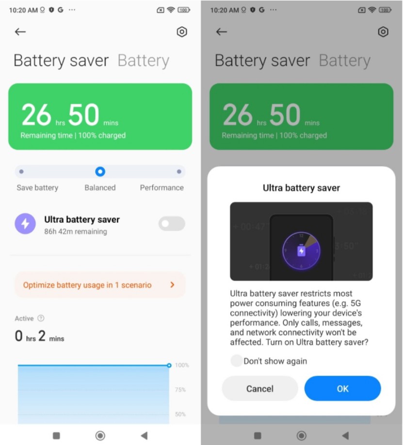 Ada juga fungsi penghemat baterai dan penghemat baterai ultra, mengaktifkannya akan memberikan masa pakai baterai tambahan sehingga kamu masih memiliki sedikit nafas untuk mencari colokan listrik