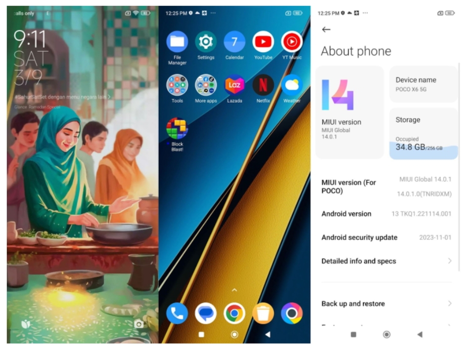 POCO X6 yang kami terima memiliki RAM LPDDR5 12GB dan penyimpanan internal UFS 3.1 256GB.