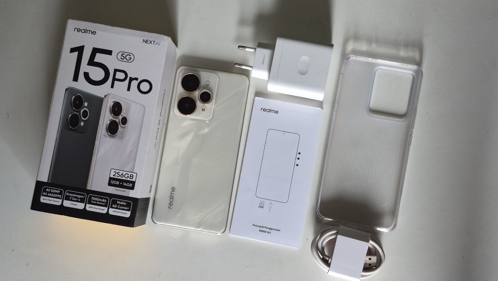 realme menyertakan adaptor charger, kabel data, soft case, buku panduan, dan kartu garansi. Kelengkapan ini membuat perangkat dapat langsung digunakan tanpa membeli aksesori tambahan.