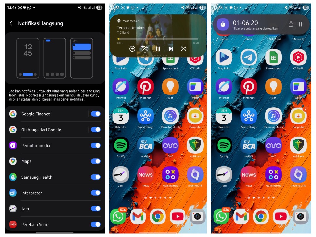 Sementara Now Bar bisa menampilkan pintasan aplikasi yang sering digunakan, kontrol pemutaran media, stopwatch atau notifikasi langsung pada layar kunci.