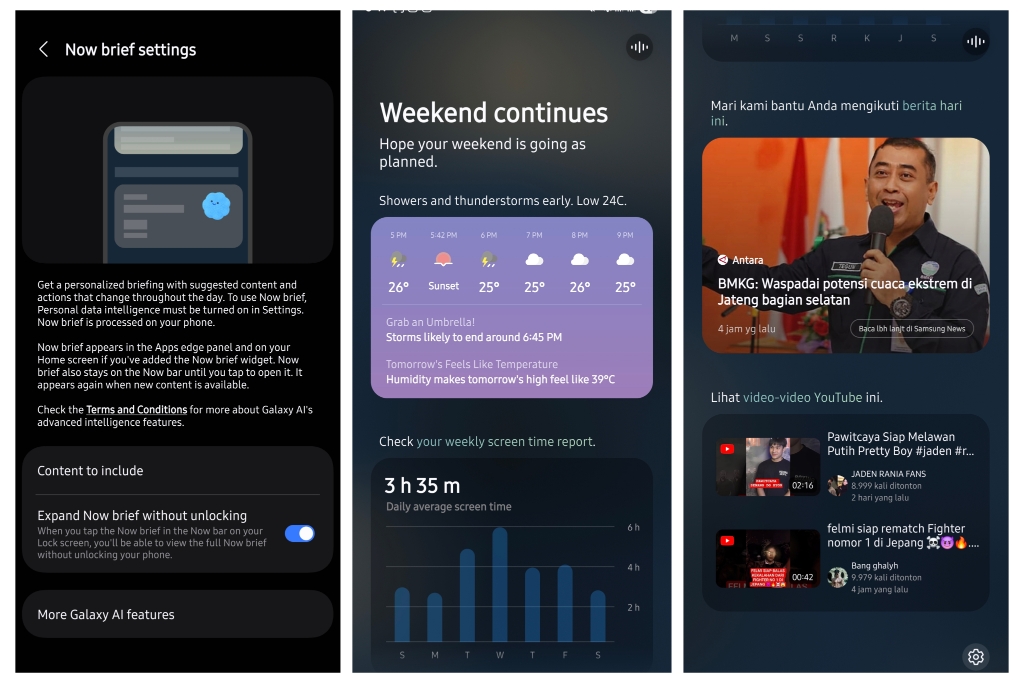 Now Brief bisa menampilkan ringkasan harian yang dipersonalisasi dan diperbarui, yang dibuat oleh AI. Kontennya bisa kita atur sendiri lho. Mulai dari informasi cuaca, ringkasan notifikasi, berita hingga konten video terbaru sesuai preferensi kita.
