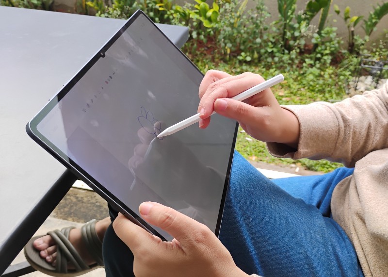 Namun, ukuran layar yang besar ini membawa konsekuensi tersendiri; beberapa pengguna melaporkan bahwa tablet terasa agak canggung saat digunakan dalam posisi rebahan, dan genggaman tangan yang lama bisa menjadi kurang nyaman.