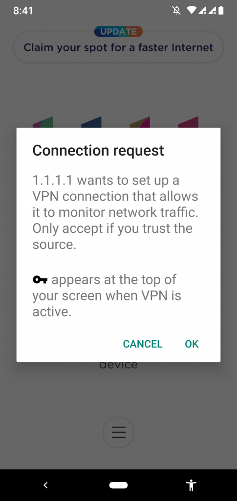 Aplikasi 1.1.1.1 sangat kami rekomendasikan lantaran ia cukup ringan dan lebih mudah untuk digunakan, memiliki koneksi yang cepat serta tidak ada pembatasan waktu. Kamu dapat mengunduhnya melalui halaman Google PlayStore.